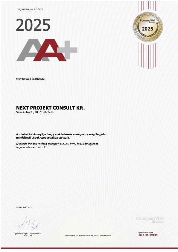 Next Projekt Consult Kft. 4032 Debrecen, Szikes utca 4.